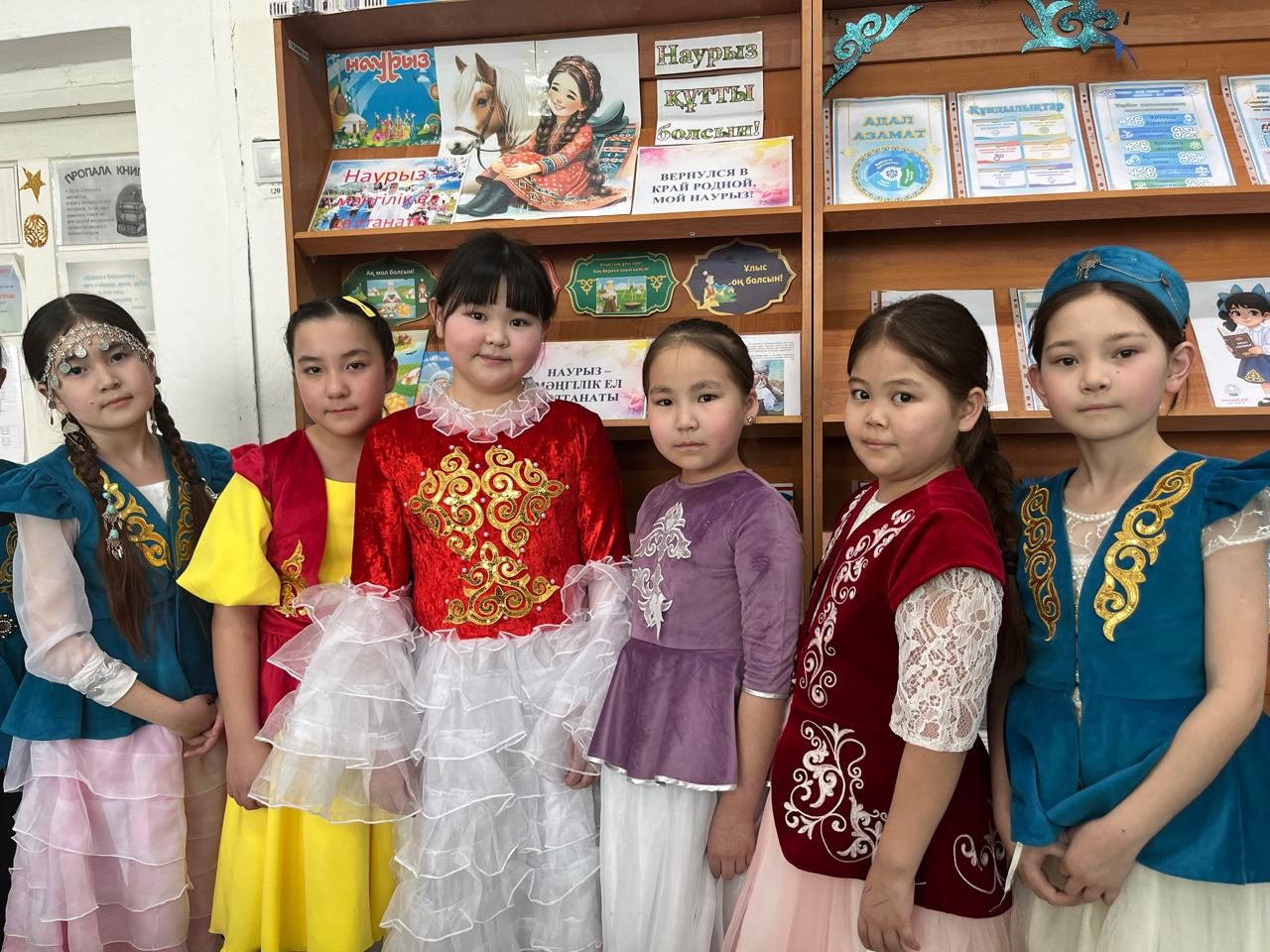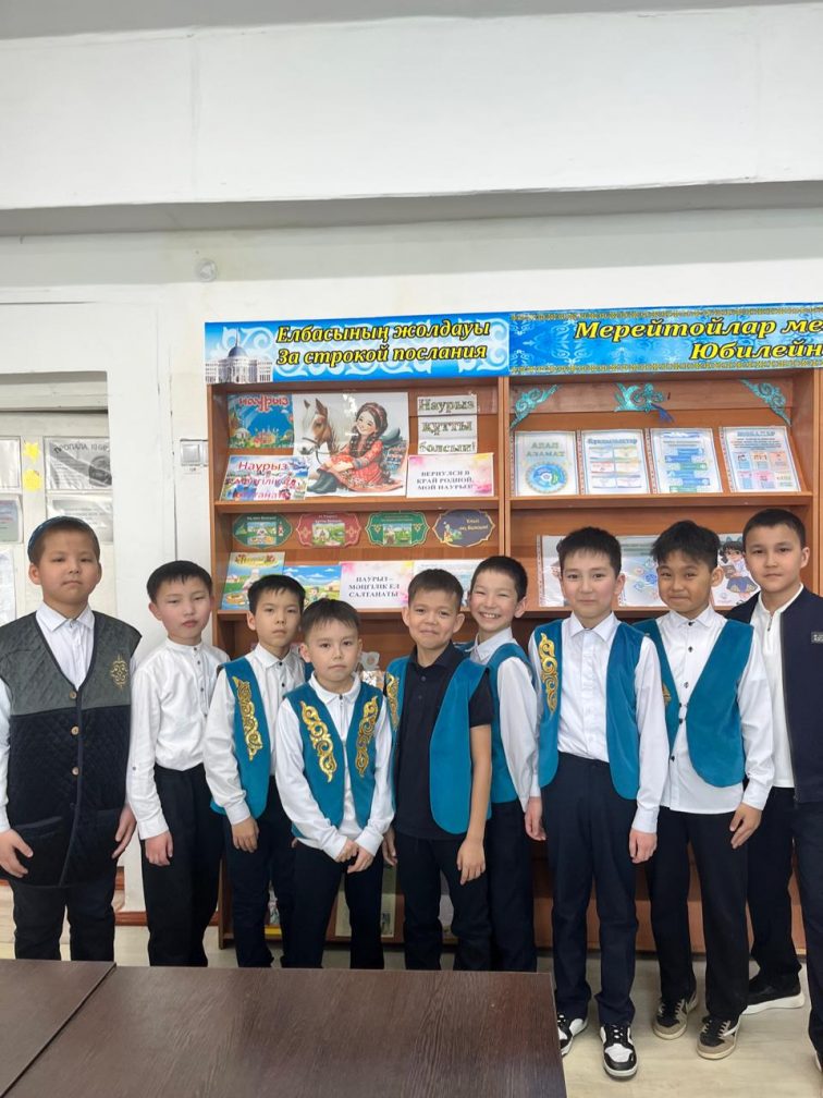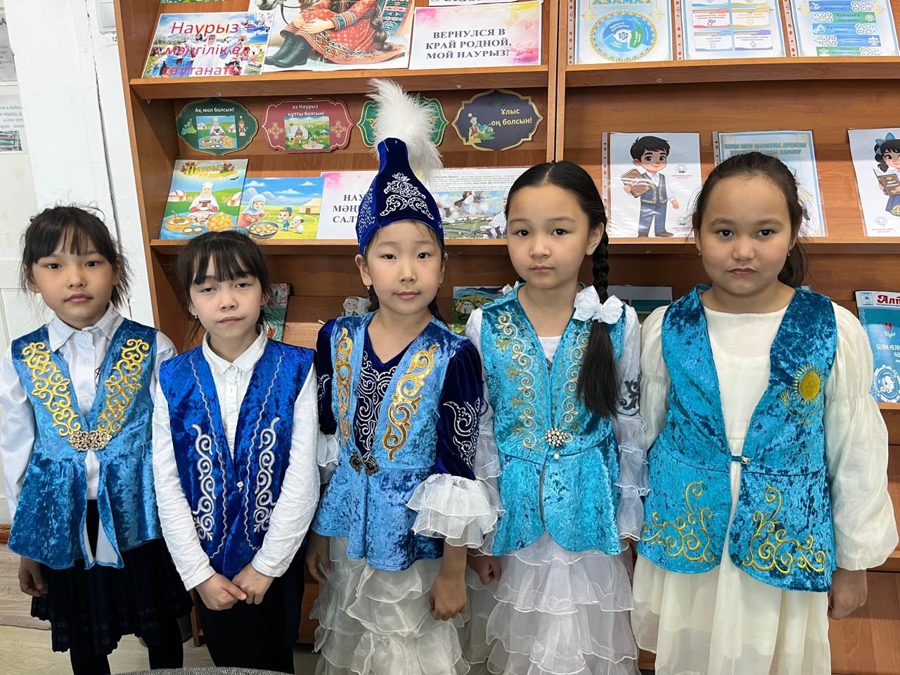 “ Ақмола облысы білім басқармасының Көкшетау қаласы бойынша білім бөлімі Красный Яр ауылының -1 жалпы орта білім мектебі”КММ Мектеп кітапханасында бастауыш сынып оқушылары Наурыз мерекесіне орай өлеңдер оқыды.